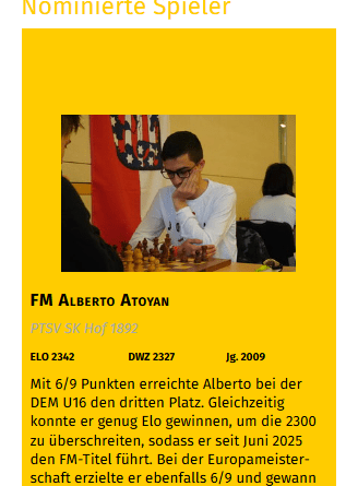 Am Sonntag, den 29. März 2026, fand das 17. DWZ-Turnier, das vom TSV Bindlach und dem Schachbezirk Oberfranken organisiert wurde, in Bindlach statt. Insgesamt spielten 36 Jugendliche in sieben individuell eingeteilten und möglichst nach Spielstärke ausgeglichenen Gruppen in den Altersklassen U12 und Ü12 mit.