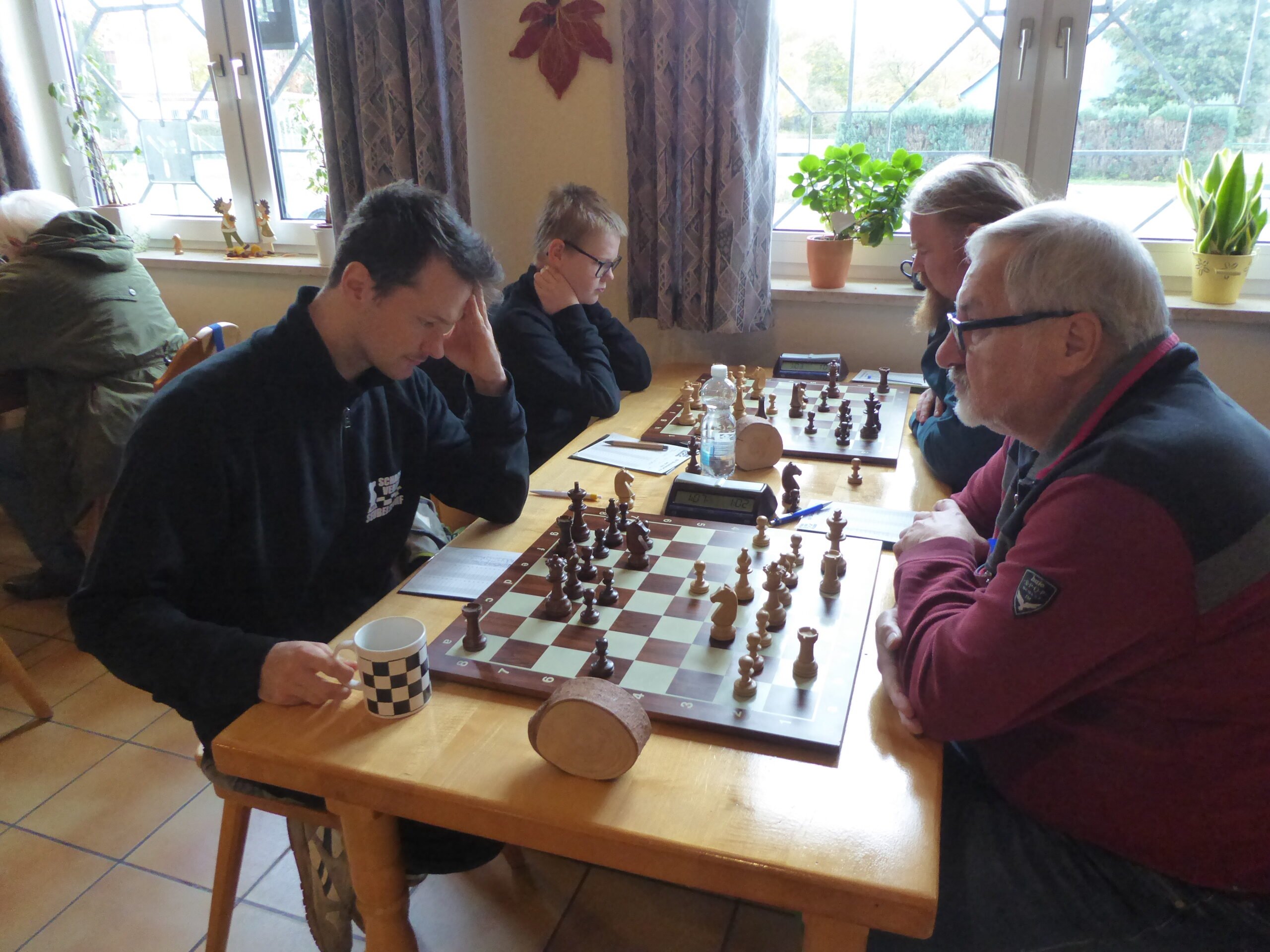 Schon zum Saisonauftakt der Bezirksoberliga hatte sich das Team um FM Gegenfurtner durchaus unerwartet beim Vorjahres-Vize Kronach durchgesetzt. Parallel hatte Fast-Absteiger Hollfeld/Memmelsdorf nicht minder überraschend beide Punkte aus Kulmbach mitgenommen. So war zwar beim Duell heute die Favoritenrolle klar verteilt – spannend sollte es aber dennoch werden. Von „scharfen Partien“ wird berichtet – und von einem Nachwuchsspieler namens Moritz Fiedler (auf dem Bild, das uns Uwe Voigt zur Verfügung gestellt hat, hinten links), der gegen einen deutlich höher gewerteten Kontrahenten ein Remis erkämpfte. Dieses Unentschieden – dazu vier Siege an den ersten vier Brettern – gab mit den Ausschlag für den 5:3-Erfolg. Seubelsdorf bleibt an der Spitze, sogar als einzige Mannschaft mit 4:0 Punkten. Und die Konkurrenz? Kronach kassierte in Kulmbach gleich die zweite Niederlage. Auch Sonneberg, in der Vorsaison noch Regionalligist, muss sich nach dem 4:4 in Oberkotzau erst einmal im Keller einrichten. Kirchenlaibach gelang ein recht souveräner Sieg gegen Bindlach 2. Apropos Kirchenlaibach: Die erfahrene Truppe trifft in Runde drei am Volkstrauertag auf Seubelsdorf.